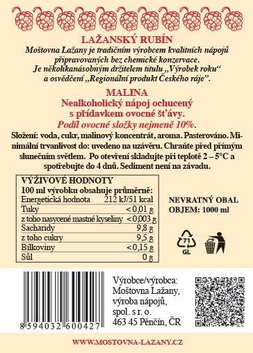 Nápoj vyrobený z malinového koncentrátu s jemnou, ale výraznou chutí.